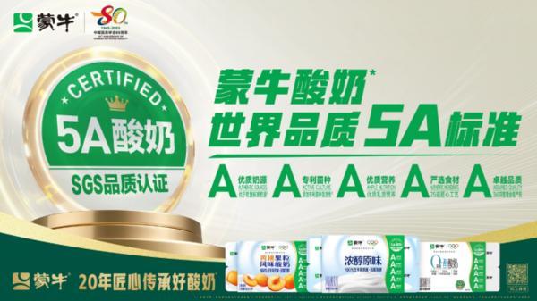 蒙牛5A标准好酸奶,从优质奶源、专利菌种、优质营养、严选食材和卓越品质,重新定义了低温酸奶的品质高标准,精准匹配国民的营养需求。从 “每天一斤奶,强壮中国人” 到 “世界品质,5A 酸奶,营养千家万户”,蒙牛始终将企业发展与国民健康紧密相连。